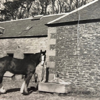 It was from someone introducing themselves as having lived at Teindside from a very young age. He said a friend had told him that they thought his old family home had been on the telly, so he had caught it on All4. In his message he made reference to his grannie and his parents and at first my reaction was, as is so sadly the case nowadays; “is this a scam”. Is this someone trying to wheedle their way into our home for nefarious purposes? My guard went up. I was polite. I asked some questions that I thought might prove or disprove this person’s claims. Given some measure of assurance, I tentatively sent my email address and suggested we continue our conversation there. Then came the photographs, taken from family albums: Square, black and white pictures with white borders, our house was unmistakable. The U-shaped stone outbuildings, known in Scotland as a ‘Steading’ were still complete, there was a heavy horse stood at a stone trough, a lamb on the cobbles in the yard, and an arial shot, taken we think, in the early nineteen sixties. More pictures followed, a very old, faded picture of a man in uniform on horseback at the main gate. We think this was taken at the time of the first world war and was of the gentleman farmer who was resident here a hundred years ago. He was the Great, Great Grandfather of Peter, the guy who had got in touch via Instagram. Then there were pictures of Great Grandfather and Great Grandmother and an old motor car on the front drive. Images of the house with the trees so much smaller. The pictures kept coming. This was the most amazing archive that charted a century of one family’s residence at Teindside; we were over the moon.