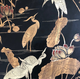 I purchased this beautiful little wine table from an auction last summer. It is in remarkably good condition considering its age. I have always loved chinoiserie as a decorative style and have enjoyed marvelling at the designedly exuberant concoctions of eastern-inspired fantasy, in many country houses I have visited. So, I was determined to dedicate at least one room to it, here at home.